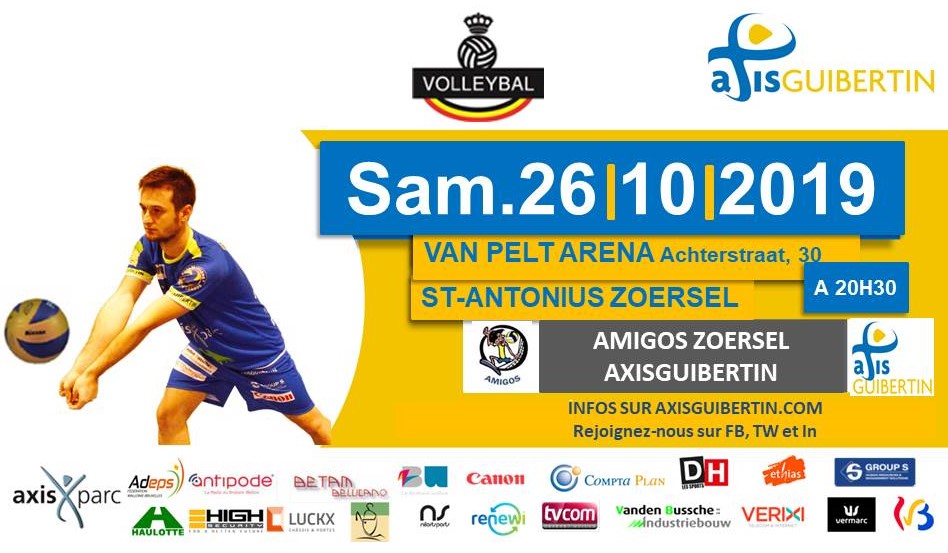 Amigos Zoersel – AXISGUIBERTIN 21 octobre 2019News Nouvelle rencontre du championnat de Ligue B ce samedi : notre équipe fanion se rend chez l'autre ancien pensionnaire de la Ligue A de la défunte saison : Amigos Zoersel !