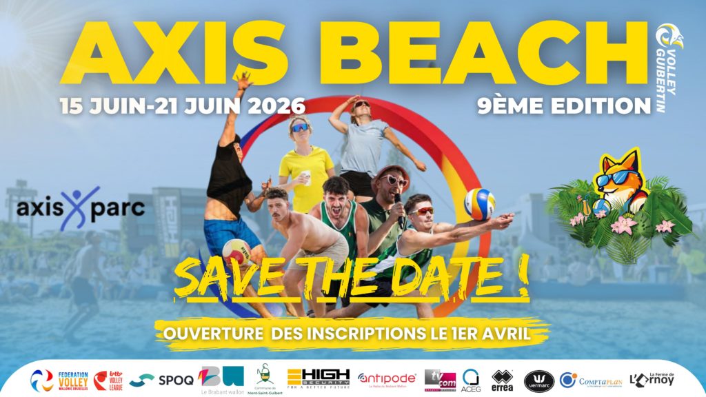 - 40€/joueur (min. 4 joueurs; max. 1 affilié (en National ou Provincial) dans l’équipe) comprenant l’inscription au tournoi du samedi ou du dimanche, le t-shirt de l’AXIS BEACH, un ticket repas et 2 tickets boissons.
