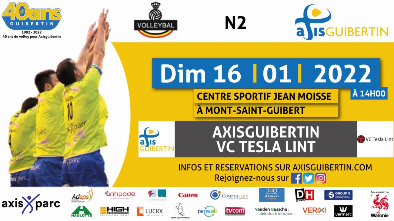 AXISGUIBERTIN N2 – Tesla Lint 12 janvier 2022News Ce dimanche à 14:00, la N2 accueille le second de sa division : Tesla Lint. Les hommes d'Audry Frankart auront à coeur de réaliser un petit exploit dans leur antre !