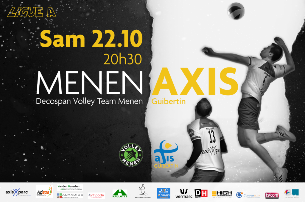 Decospan Menin – AXISGUIBERTIN 18 octobre 2022News Ce samedii à 20:30, notre équipe fanion se déplace dans l'Enfer de Menin, face au vice-champion de Belgique ! Un nouveau défi de taille après le premier match de la saison face au champion de Belgique !