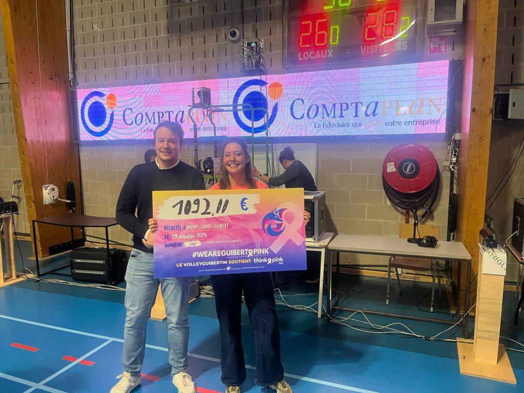 Antoine Degueldre de notre grand partenaire pour cette campagne et partnebaire du club de longue date Compta Plan a remis le chèque à Céline Denef, représenté féminine au sein du club 💛💙