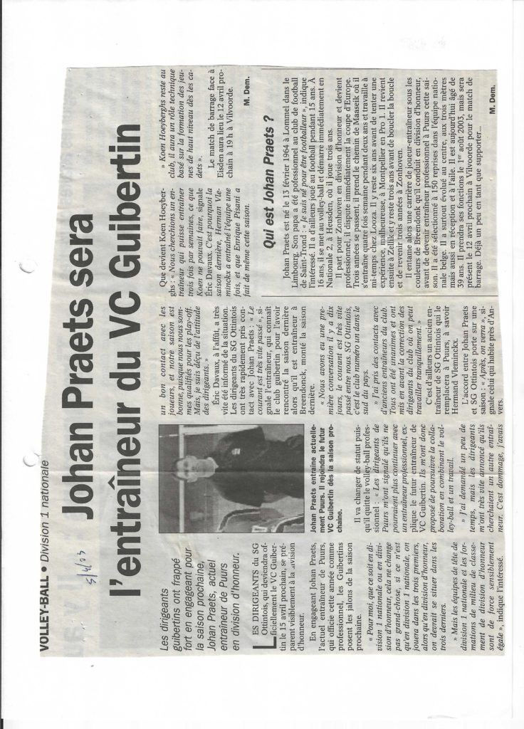 Mais donc…. le 1er juillet, lors de son réveil après son traditionnel repas de fin d’année toujours bien dynamique, le secrétaire du club eut un choc en ouvrant ses mails : l’annonce du retrait de Mortroux du plus haut niveau belge. Il retrouva bien vite ses esprits et fit marcher son carnet d’adresses pour proposer à la fédération de remplacer Mortroux, puisque les Ottintois étaient premières réserves. Ce fut accepté relativement rapidement et le lendemain au soir, ce fut la réunion de tous les joueurs avec le bourgmestre Jean-François Breuer qui arrosa… Johan Praets allait être l’entraineur de cette équipe pour la 1ère expérience du club au plus haut niveau belge.