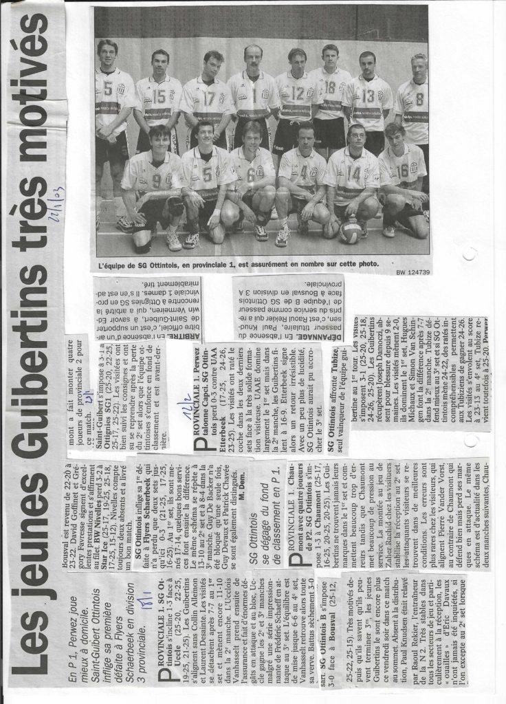 A côté de cela, le club alignait encore une équipe de Provinciale 1 avec déjà , Colin Allemon, Nicolas Pattyn, les frères Anas et Rachid Zaeher. Elle termina 9ème.