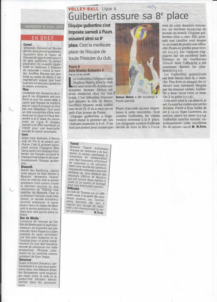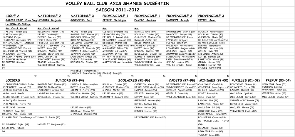 C’est aussi l’année de la montée en puissance de Roman Abinet et la timide apparition de Sébastien Dumont comme libero, tandis que François Lecat commençait son aventure internationale à Tilburg avec Brecht Van Kerckhove.