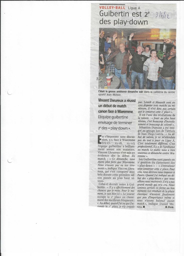 La saison avance mal, l’équipe n’y est pas et le club décide de changer d’entraineur en fin d’année. Place à l’Espagnol Juan Diego Garcia. Il est très motivé et remet de l’ordre dans l’équipe qui joue les playdowns pour éviter la descente avec notamment Waremme, entrainé à l’époque par Frederik Delanghe. Et, avec un orchestre endiablé, c’est une victoire nette contre Waremme et Ugo Blairon pour finalement se sauver et termine 8ème, le meilleur classement à ce niveau dans l’histoire du club.