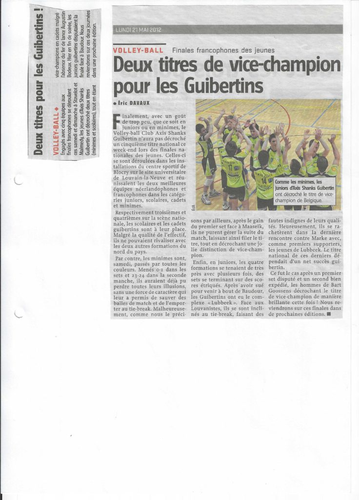 Chez les jeunes, titre francophone pour les minimes, scolaires et juniors et une 2ème place pour les cadets. En finales nationales, les juniors terminent à égalité avec Lubbeek, mais sont battus au set-average, terminant quand même vice-champions de Belgique, tout comme les minimes, équipe coachée par David Foret et dans laquelle on retrouvait Robin Foret, Alexis Lambinon, Noé Laloux et Basile Moreaux. Les scolaires terminèrent 3ème et les cadets 4ème.