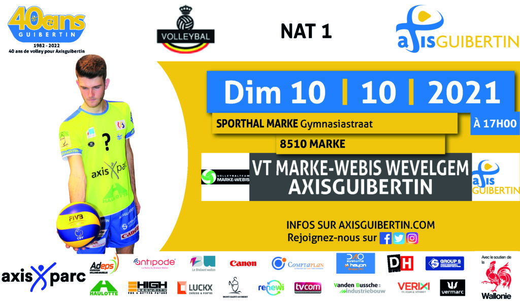 Marke Webis – Axis Guibertin 8 octobre 2021News Notre équipe fanion dispute son premier match à l’extérieur ce dimanche à 17:00 ! Après leurs trois victoires à domicile, la N1 se déplace à Marke Webis.