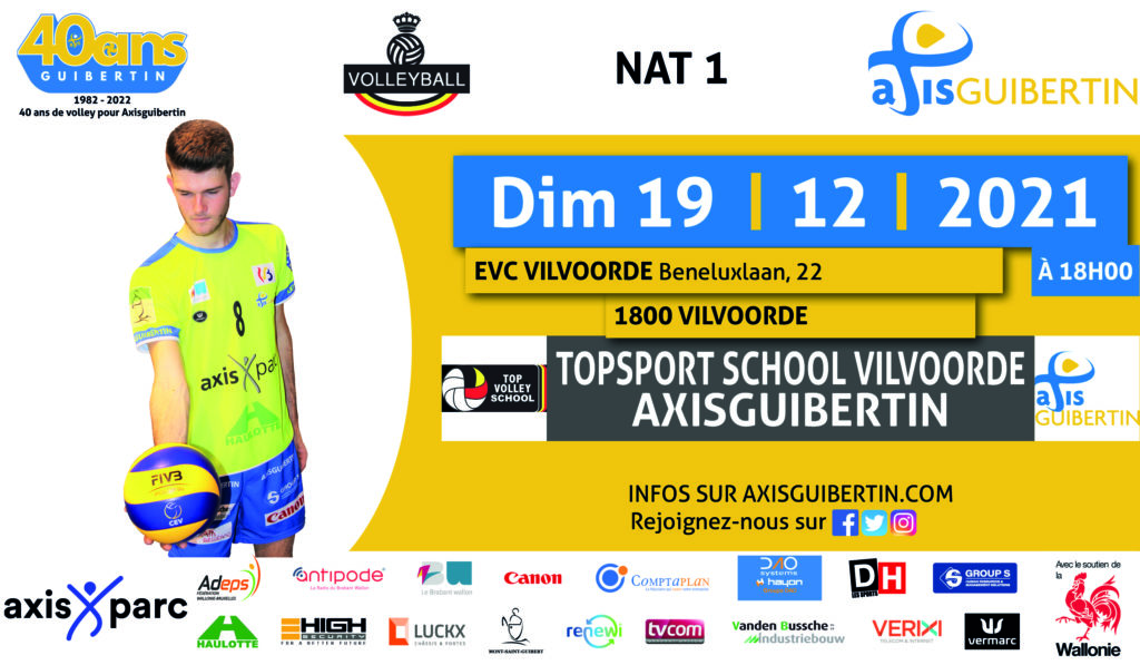Topsportschool Vilvoorde – AXISGUIBERTIN 15 décembre 2021News Dernière sortie de l'année (sauf replacement d'un match remis) pour notre équipe fanion qui se déplace chez les jeunes talents de la topsportschool de Vilvorde dimanche à 18:00 !